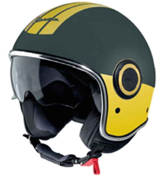 Jethelm von Vespa mit langem Visier und Sonnenblende in Fahrzeugfarbe lackiert  ,Vespa bietet mit dem VJ einen echten Allrounder Jeth…