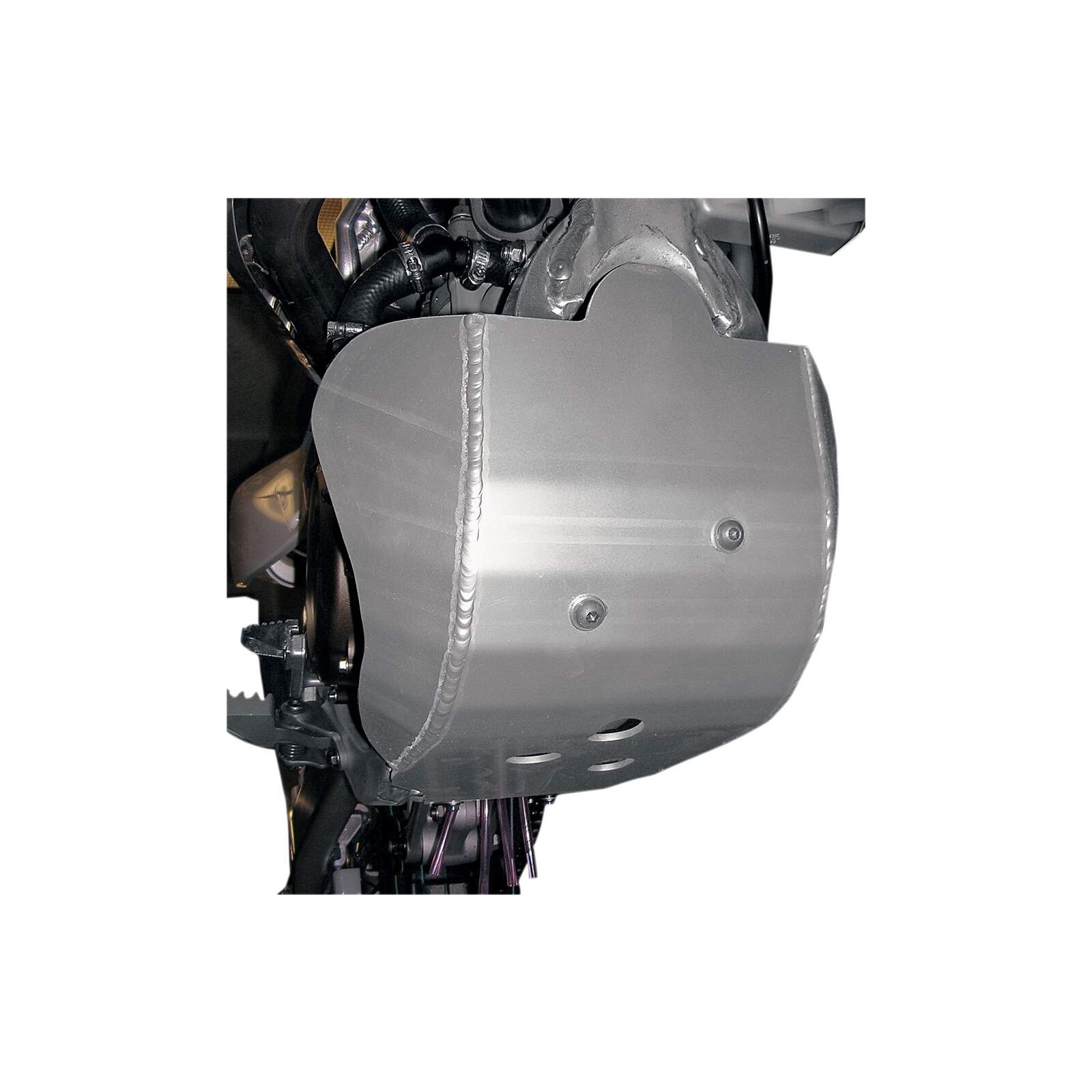 Moose Racing Motorplatte ALUM-KX450FALUMINIUM-MOTORSCHUTZPLATTEN -Schützt wichtige Motorteile und Gehäuse vor Steinen und Schmutz -Transparent eloxiert zum Schutz vor Korrosion und für ein guten Aussehen -Motorschutzplatten aus 4,8 mm (3/16″) 5052 H-32 Aluminium (für manche Platten wird Material mit 4,1 mm (0,160″) Stärke verwendet) -Kein Hängenbleiben beim Fahren über liegende Baumstämme dank glatter Unterseite -Ölablassöffnung bei allen Modellen -Wärmebehandelte CroMoly-Stahl-Klemmen sorgen für einen sicheren Halt der Schutzplatten -Inklusive Montagematerial -Ersatzklemmen erhältlich