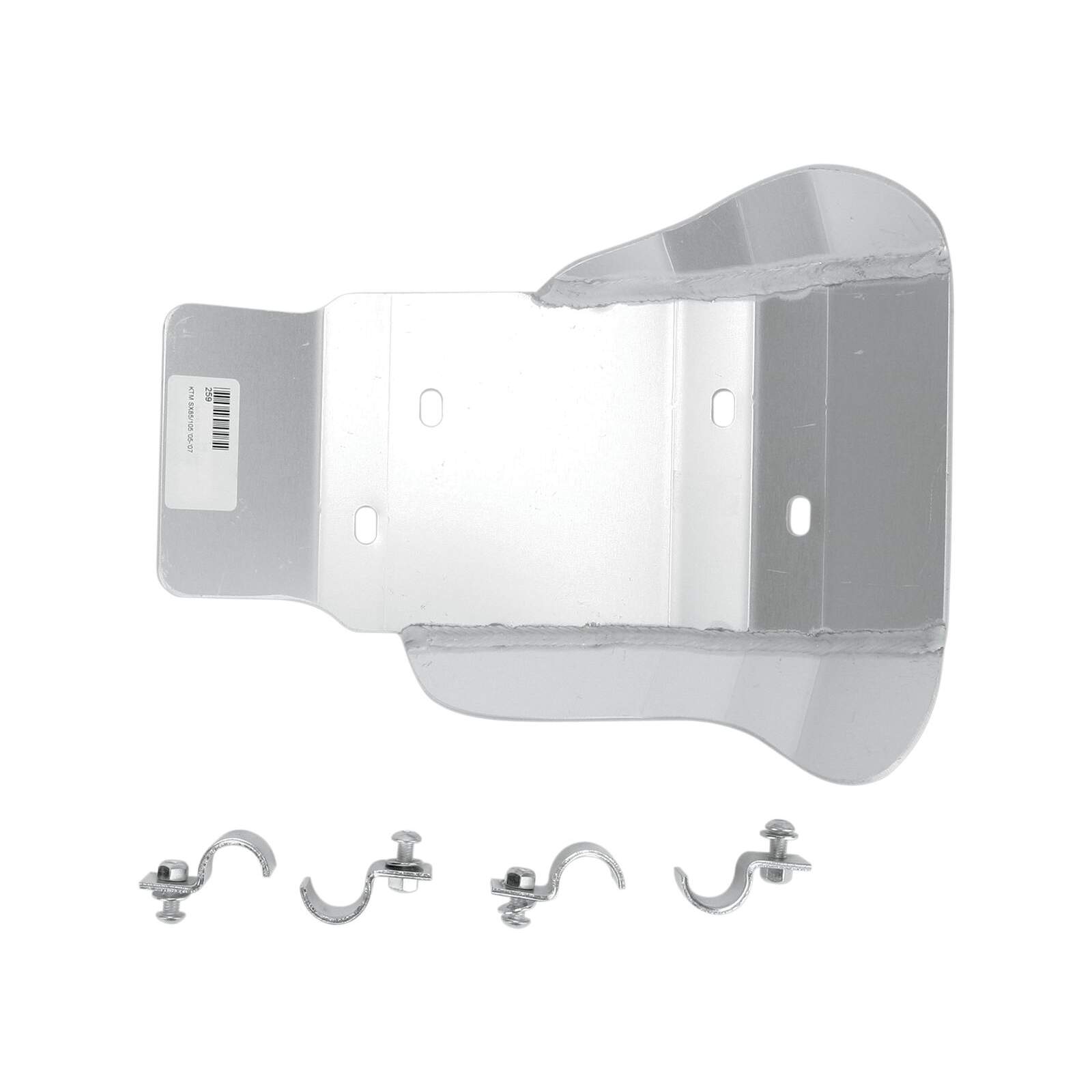 Moose Racing Motorplatte KTM SX85/105ALUMINIUM-MOTORSCHUTZPLATTEN -Schützt wichtige Motorteile und Gehäuse vor Steinen und Schmutz -Transparent eloxiert zum Schutz vor Korrosion und für ein guten Aussehen -Motorschutzplatten aus 4,8 mm (3/16″) 5052 H-32 Aluminium (für manche Platten wird Material mit 4,1 mm (0,160″) Stärke verwendet) -Kein Hängenbleiben beim Fahren über liegende Baumstämme dank glatter Unterseite -Ölablassöffnung bei allen Modellen -Wärmebehandelte CroMoly-Stahl-Klemmen sorgen für einen sicheren Halt der Schutzplatten -Inklusive Montagematerial -Ersatzklemmen erhältlich